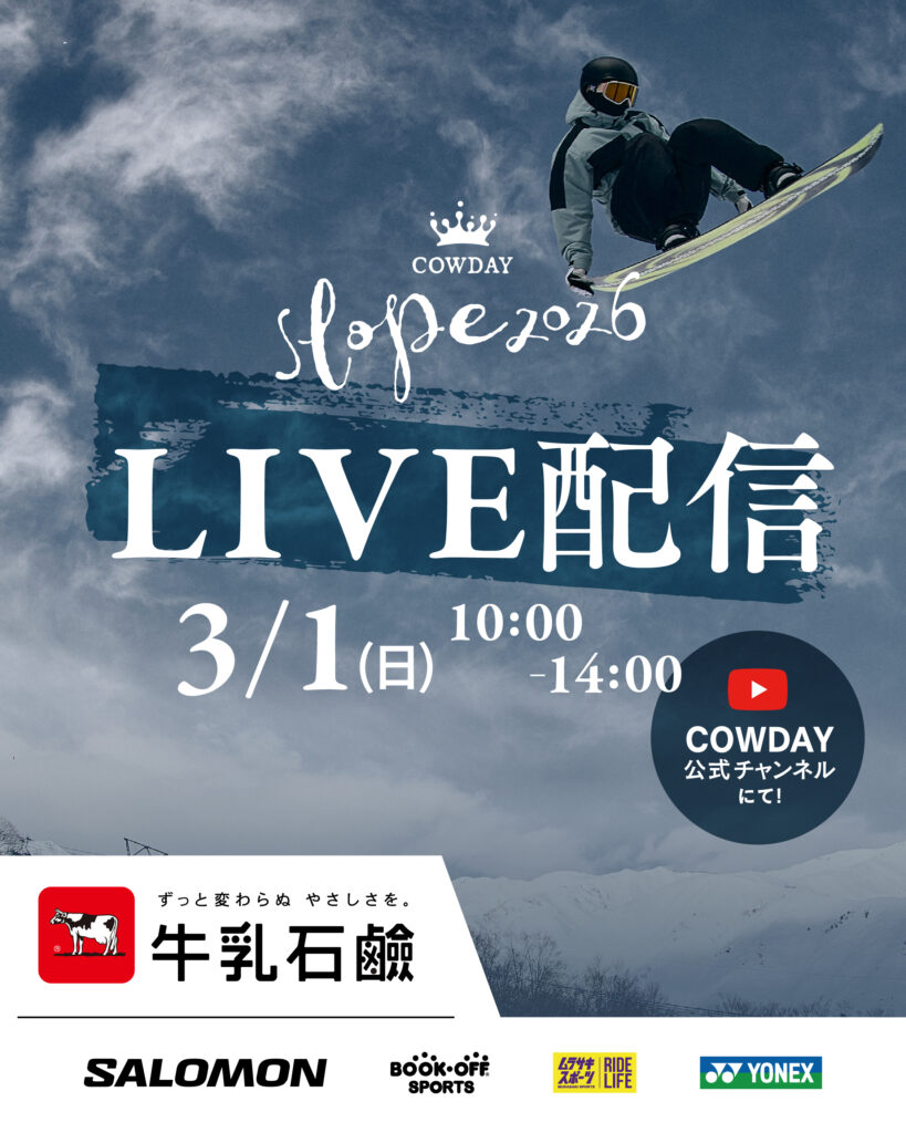 COWDAY SLOPE 2026決勝をYouTubeでLIVE配信丨3月1日(日)10:00~14:00 予定